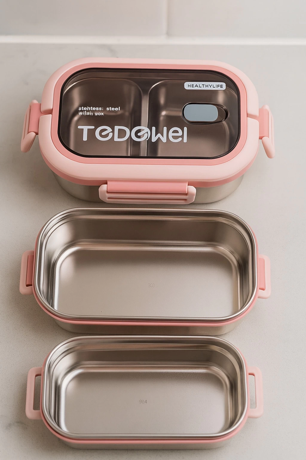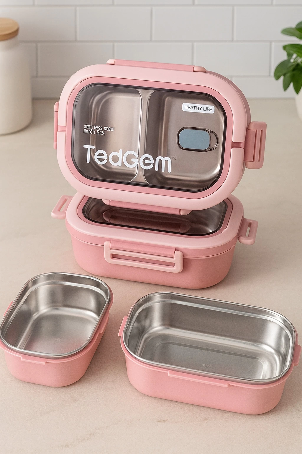 3 Katlı Paslanmaz Çelik Sızdırmaz Saklama Kabı Beslenme Kabı 2,45 Lt. Pembe İthal Ürün