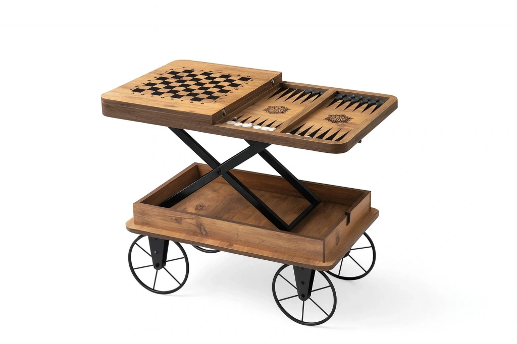 Akıllı Orta Sehpa + Satranç - Tavla Oyun Masası