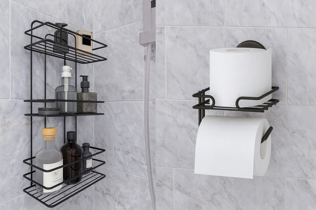 BANYO RAFI 3 KATLI SİYAH - TUVALET KAĞIDI ASKISI DUVARA MONTE VİDALI