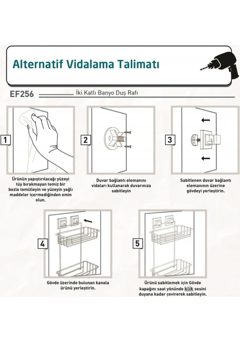 2 KATLI ASKILI PASLANMAZ BANYO KÖŞE RAFI KENDİNDEN YAPIŞKANLI (MONTAJSIZ)