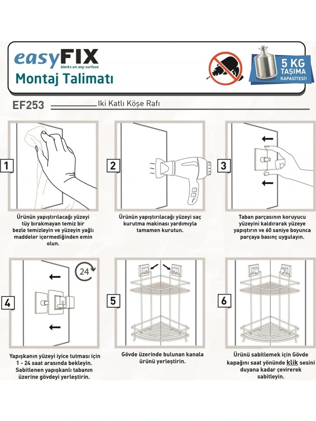 EASYFIX ÖZELLİĞİ İLE İSTEDİĞİNİZİ ZAMAN YERİNDEN SÖKEBİLİR.