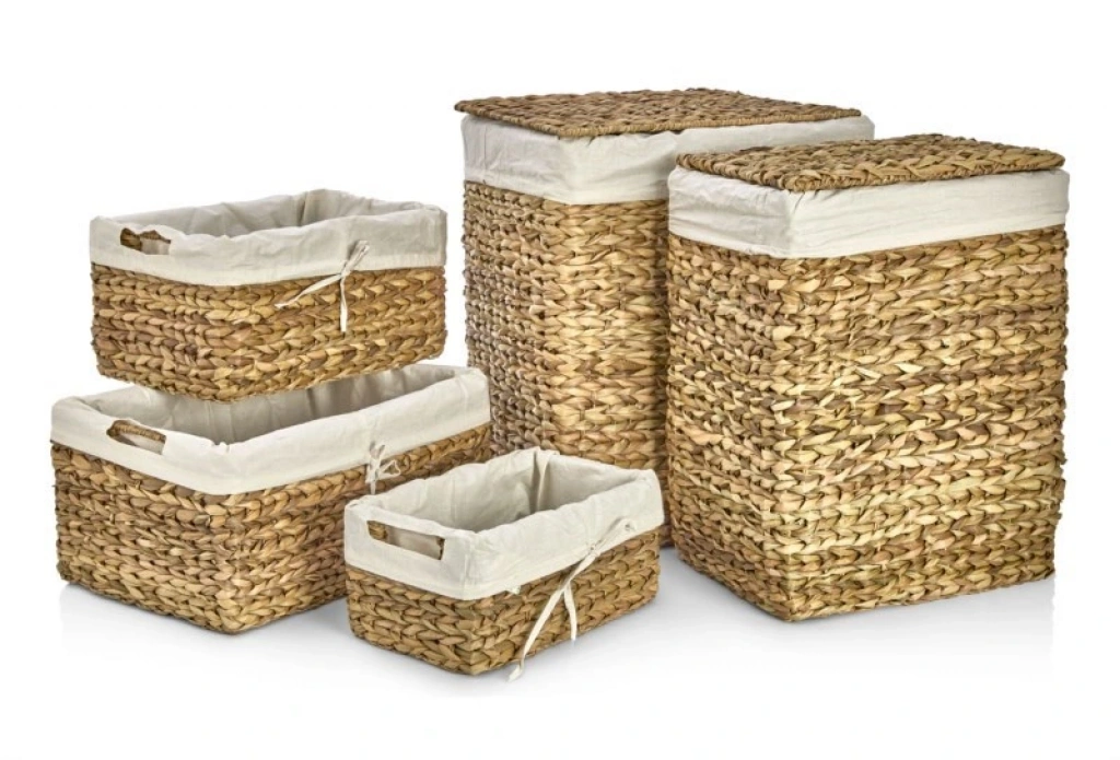 Dekoratif Dikdörtgen Hasır Çamaşır Sepet Sele Düzenleyici 5 li