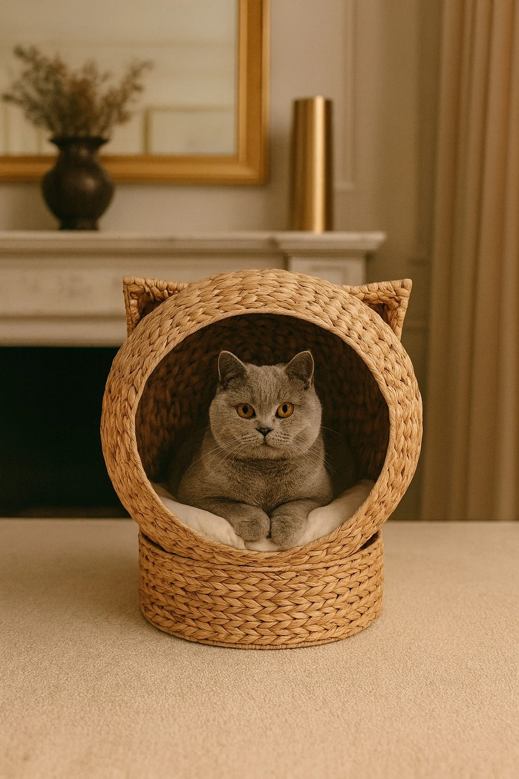 DEKORATİF HASIR KEDİ YATAĞI