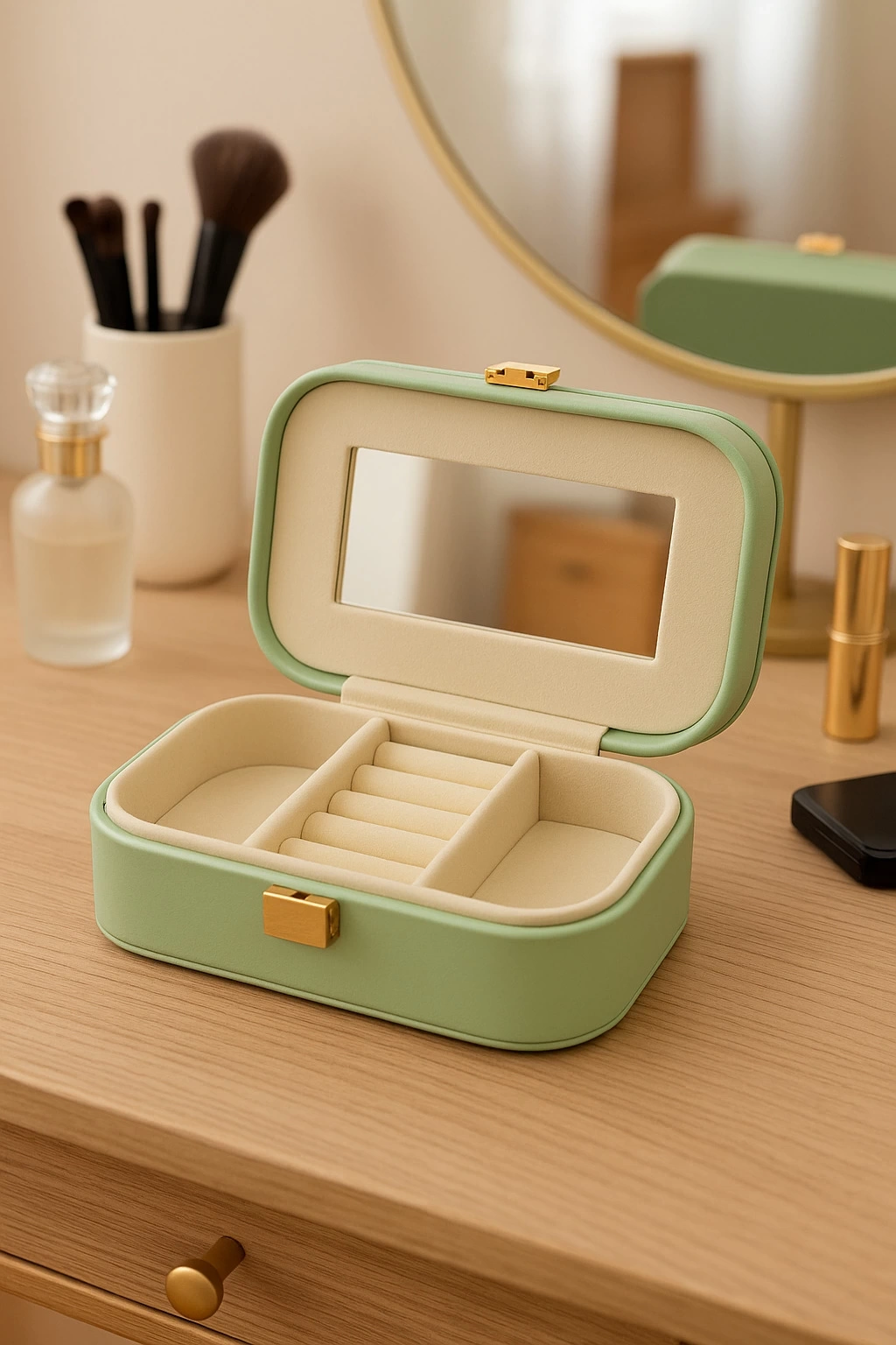 Deri Mini Seyahat Takı Bijuteri Mücevher Kutusu Organizer Düzenleyici 15cm Yeşil İthal Ürün