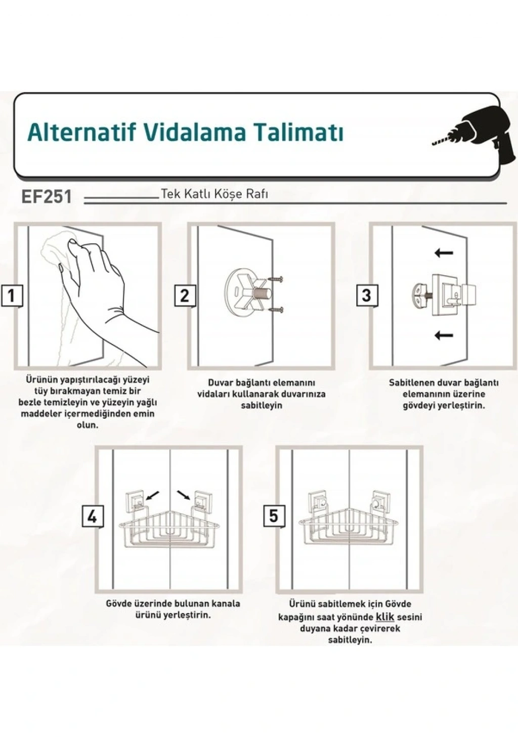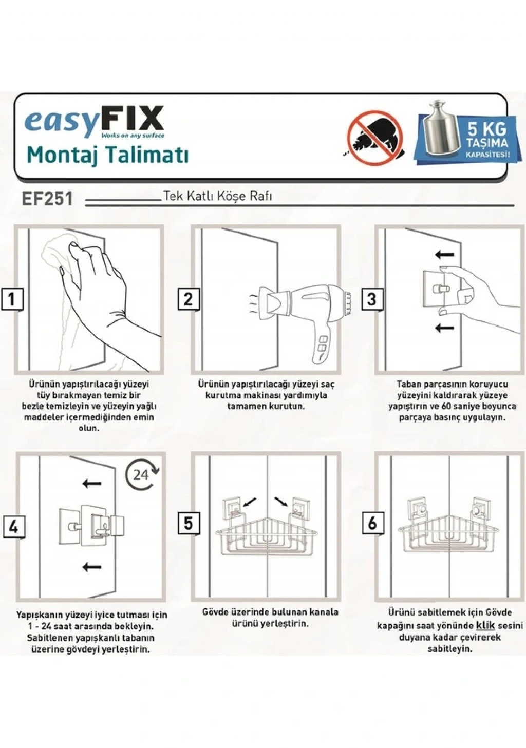 EASYFİX YAPIŞKANLI MONTAJSIZ ASKILI PASLANMAZ BANYO KÖŞE RAFI