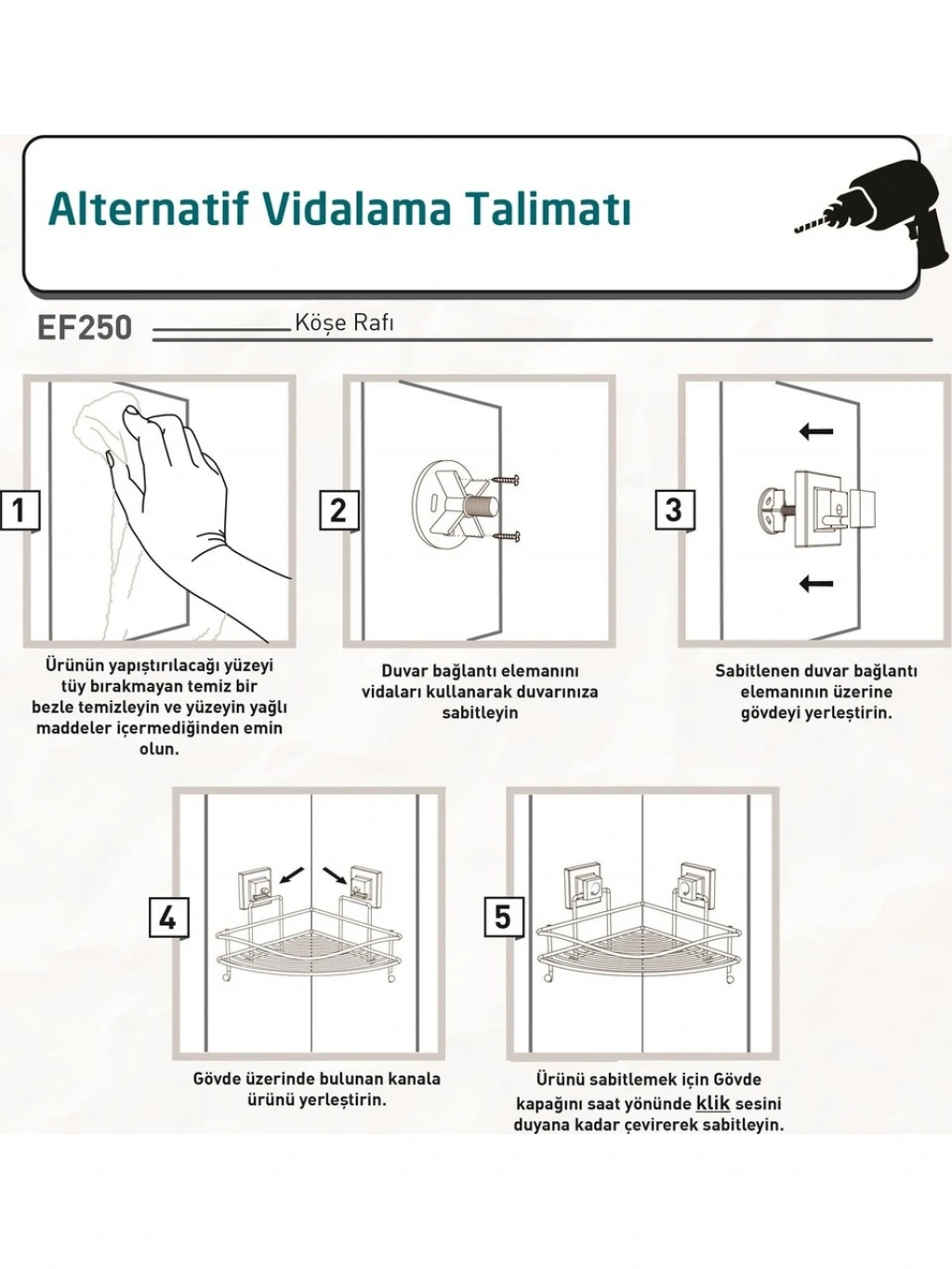 KENDİNDEN YAPIŞKANLI ASKILI PASLANMAZ BANYO KÖŞE RAFI
