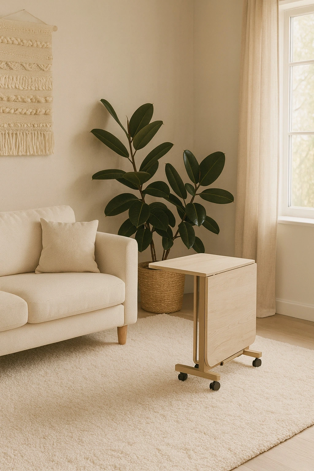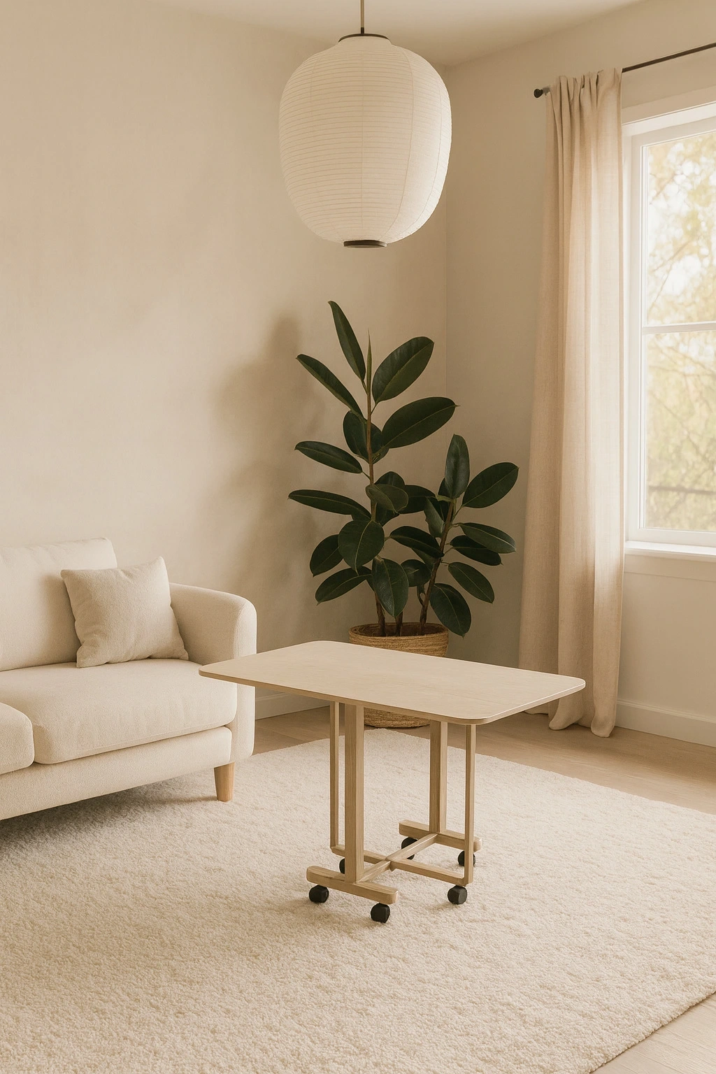 Tekerlekleri sayesinde masayı istediğiniz alana kolayca taşıyabilir siniz.