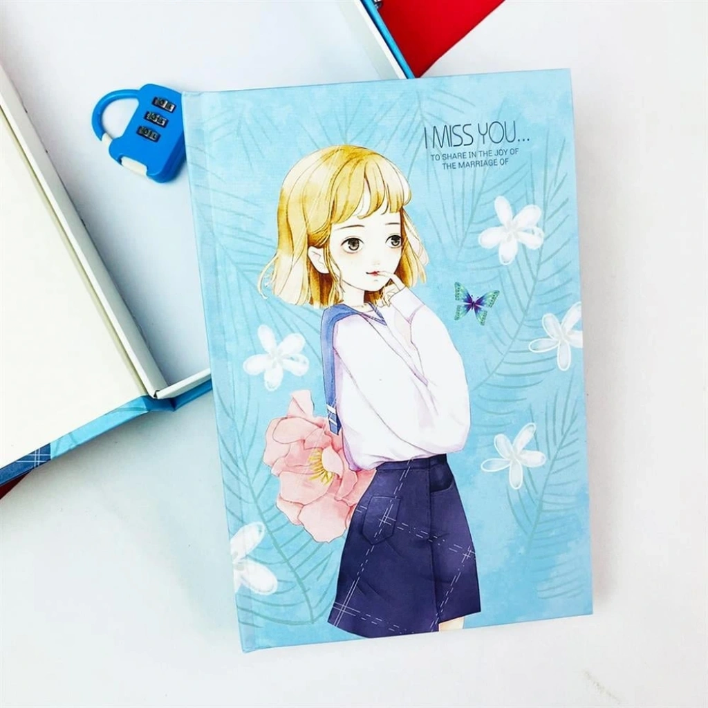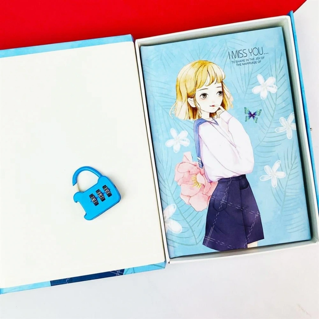 Kilitli Kutulu Ajanda Günlük Not Hatıra Defteri Notebook Mavi