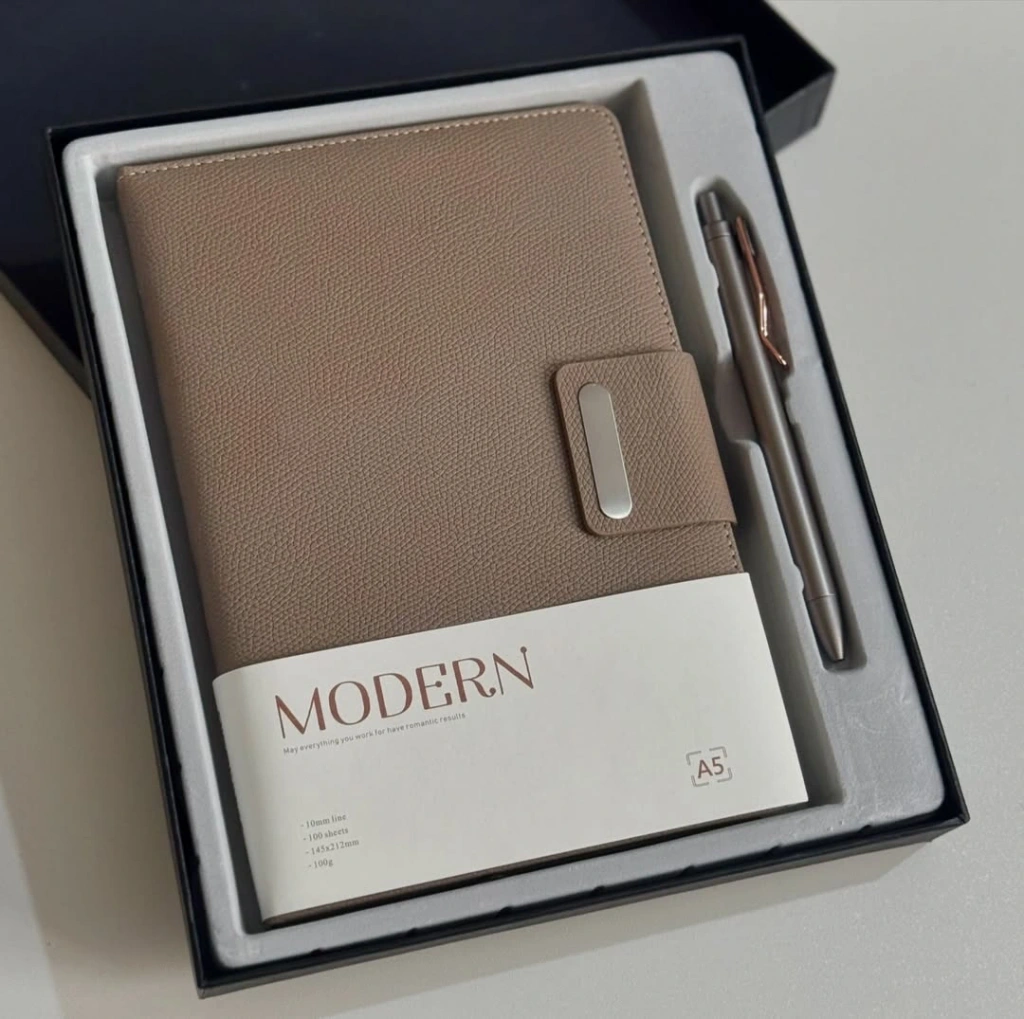 Mıknatıs Kapaklı Defter, Gümüş Renk Tükenmez Kalem.