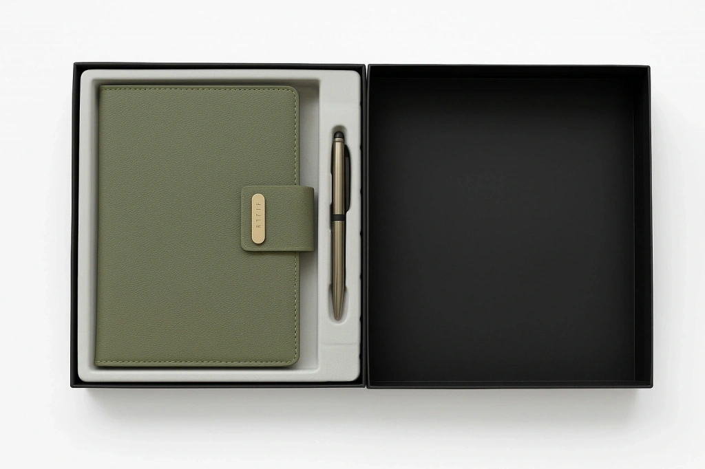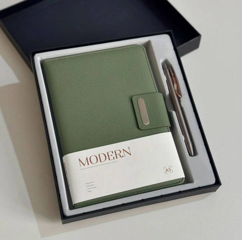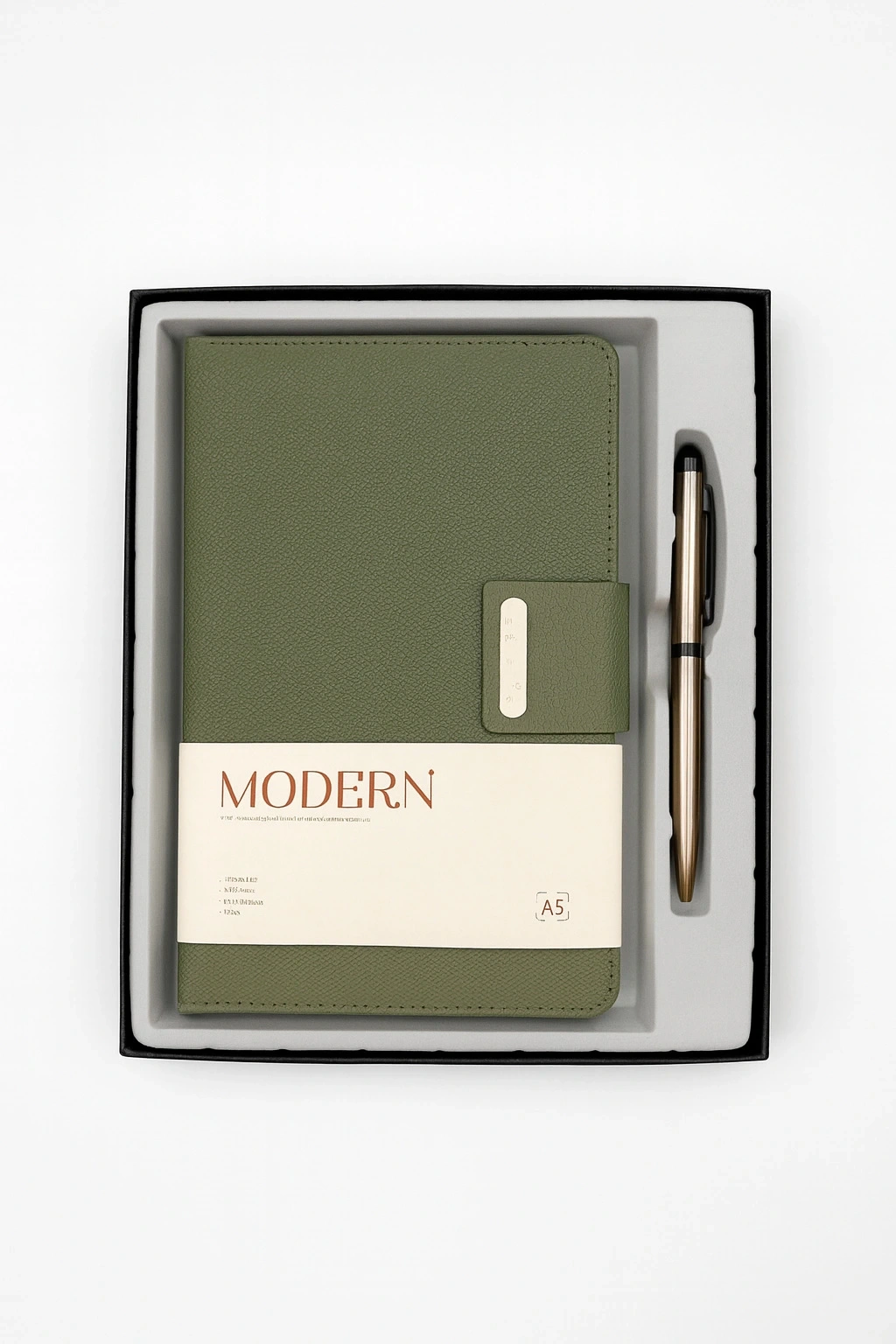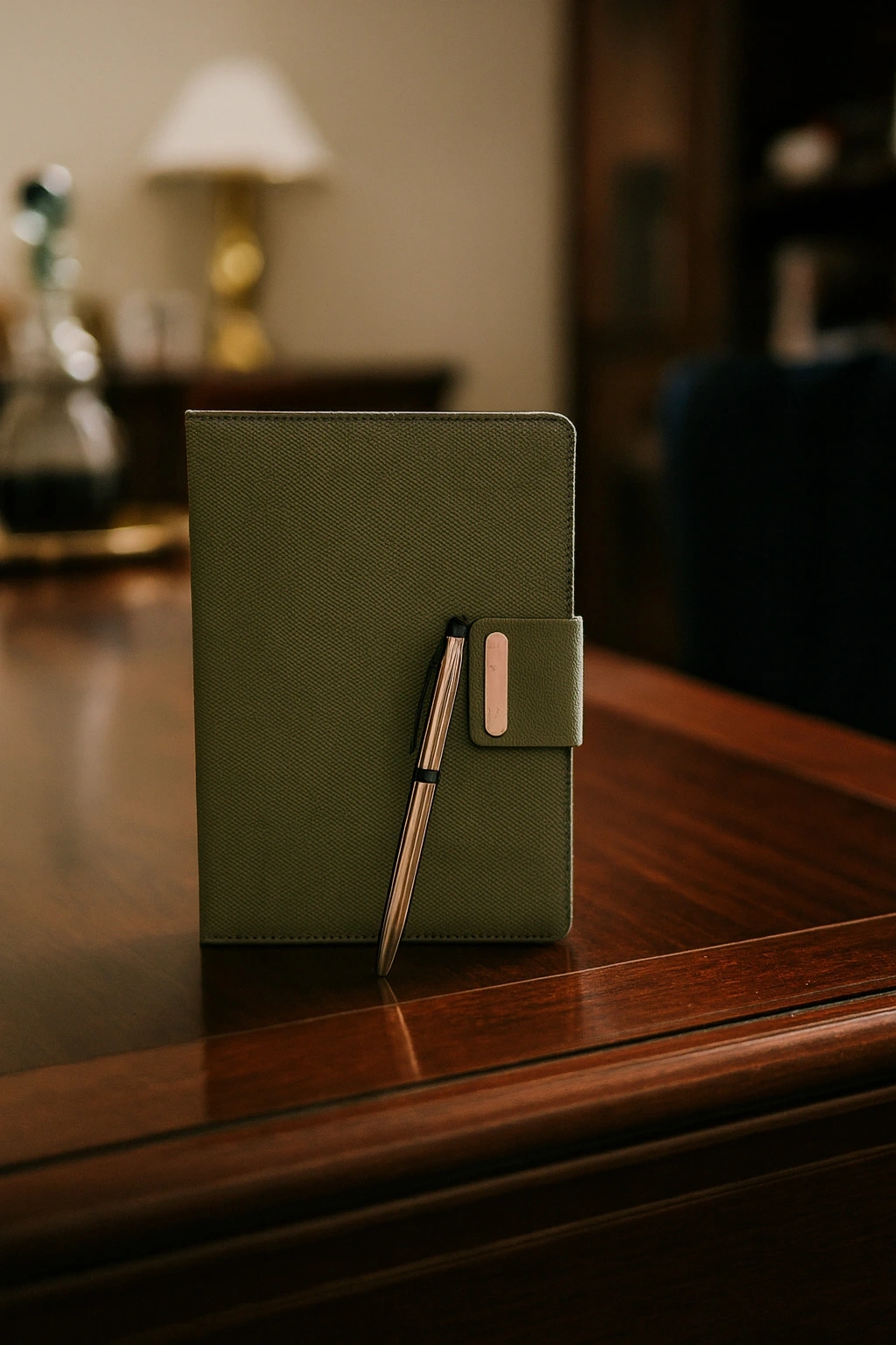 Mıknatıs Kapaklı Defter, Gümüş Renk Tükenmez Kalem.