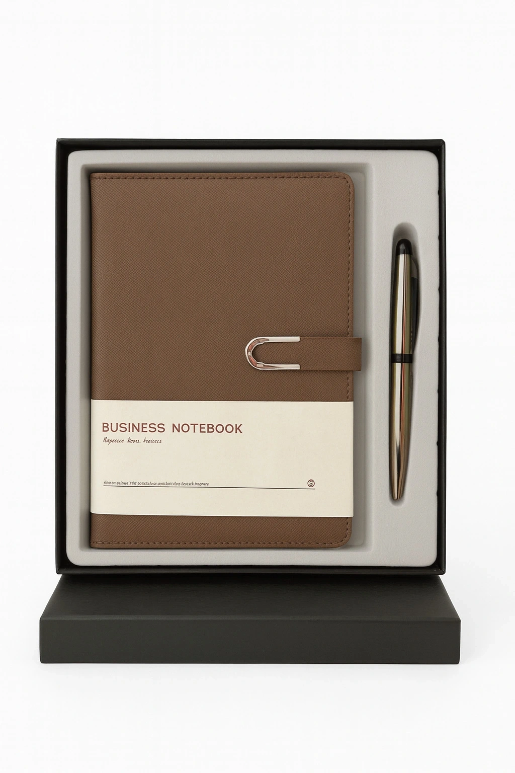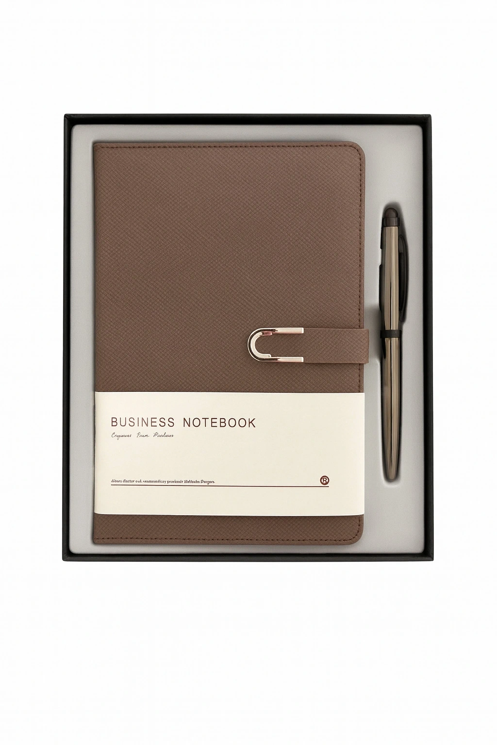 Kumaş Mıknatıs Kapaklı Kalemli Ajanda Günlük Not Defteri Notebook Kahve