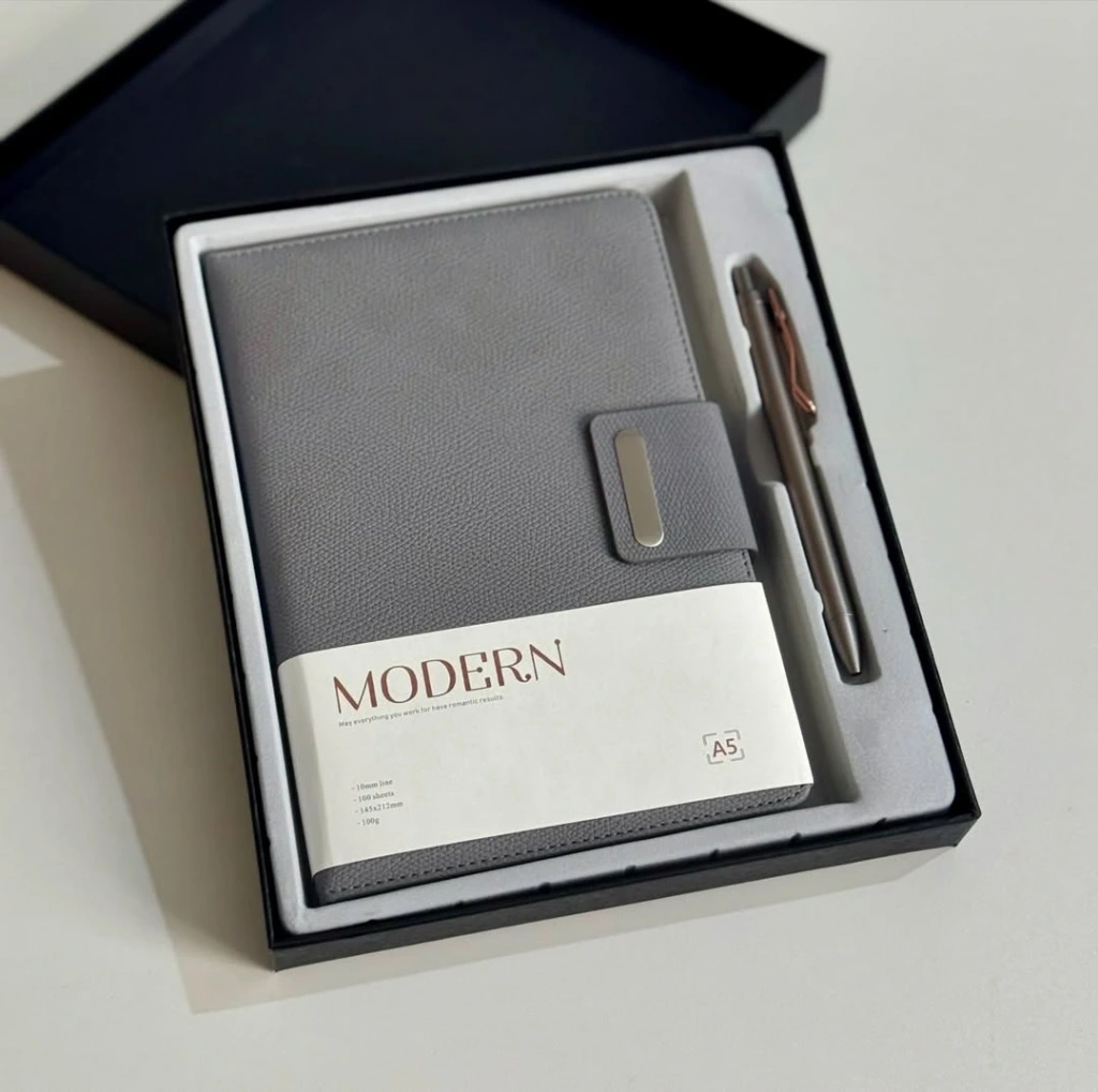 Mıknatıs Kapaklı Defter, Gümüş Renk Tükenmez Kalem.