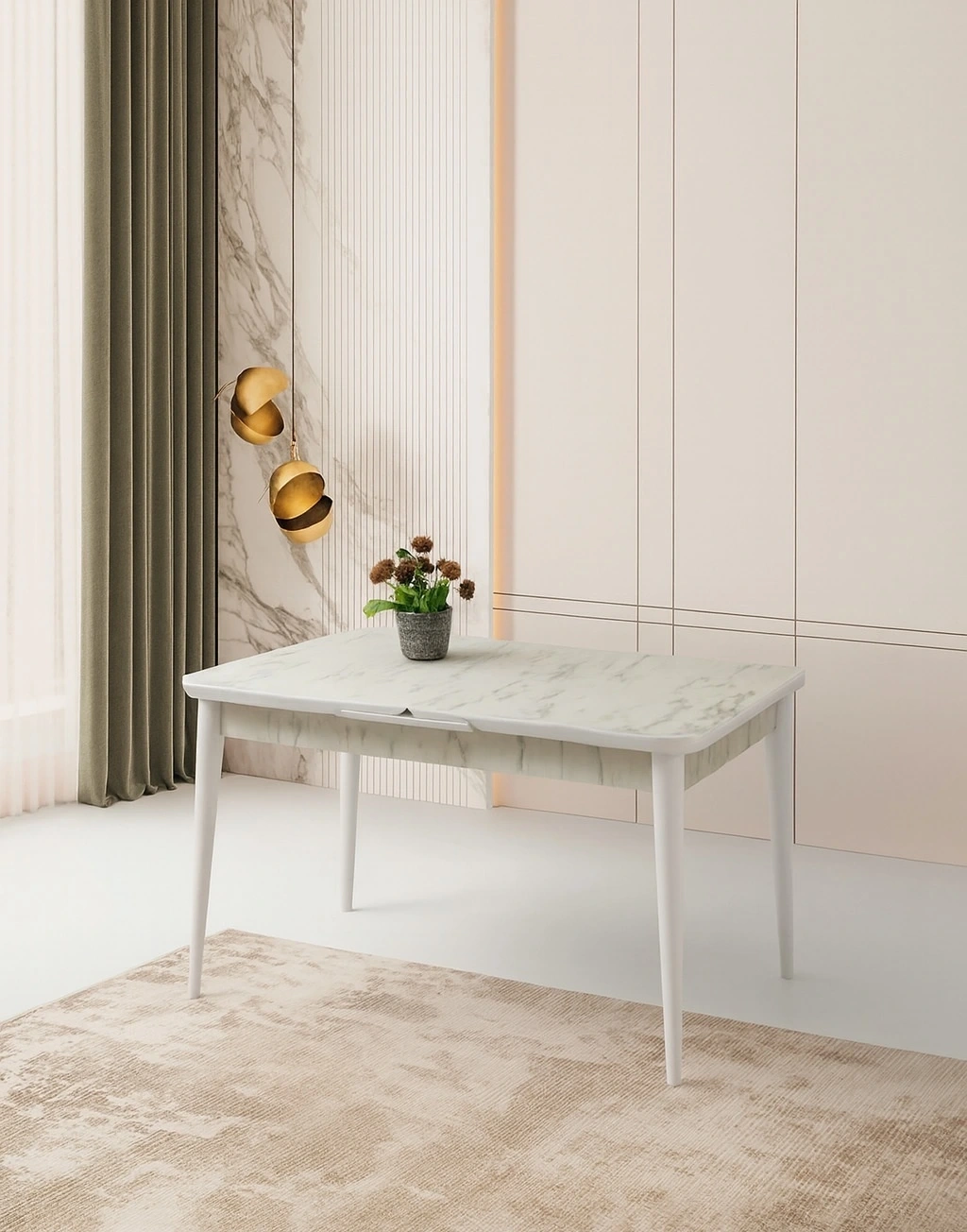 Hg Marmo Ortadan Açılır Büyüyen Yemek Masası Mermer Desenli 80x130cm SADECE MASA FİYATIDIR