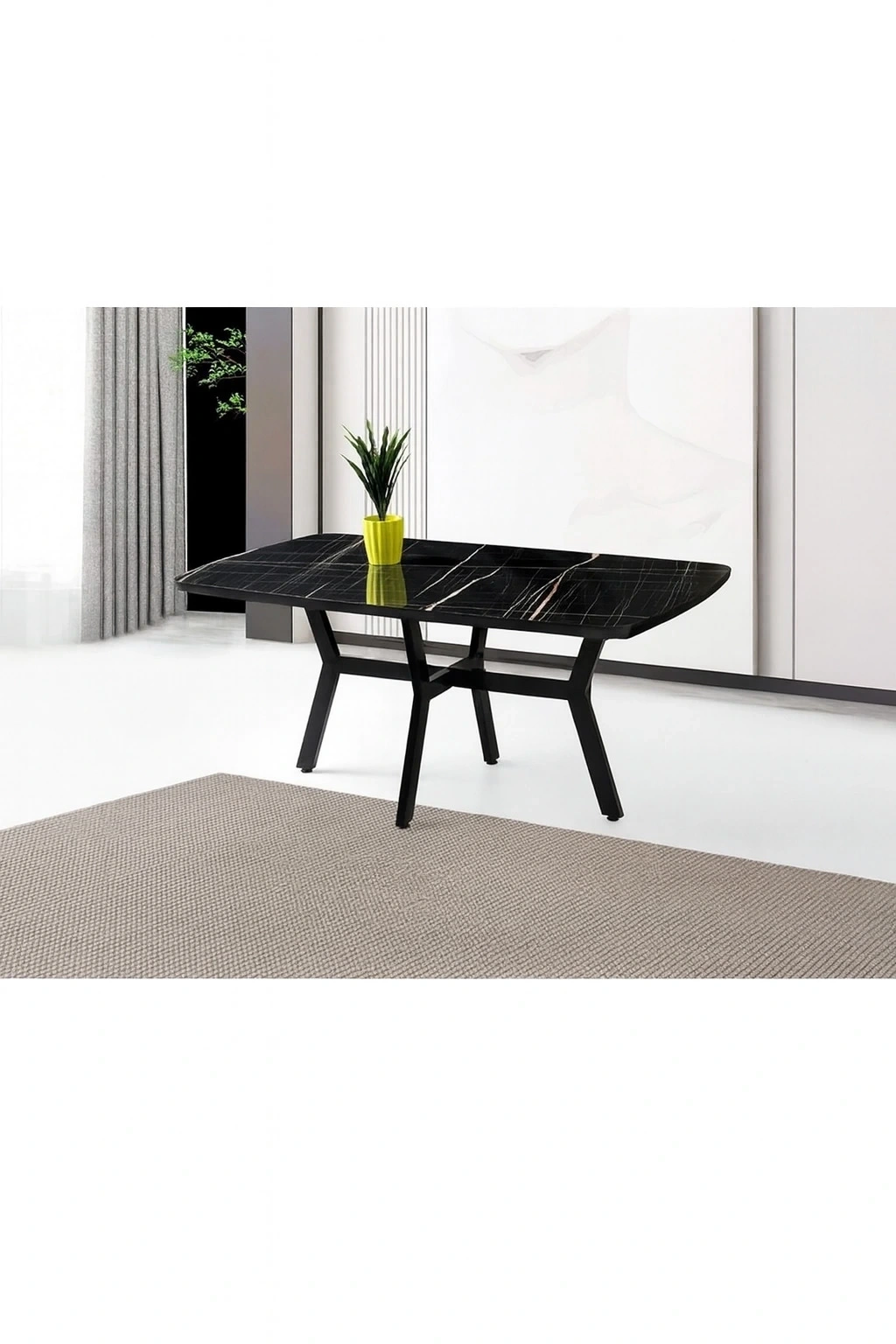 SABİT AHŞAP YEMEK MASASI SİYAH MERMER DESENLİ 90X160cm