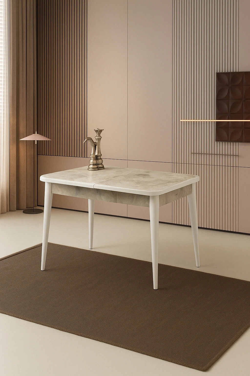 Rambla Ortadan Açılır Büyüyen Yemek Masası Mermer Desenli 80x130cm