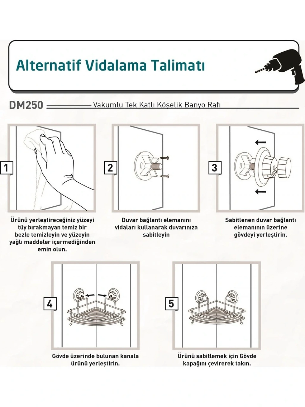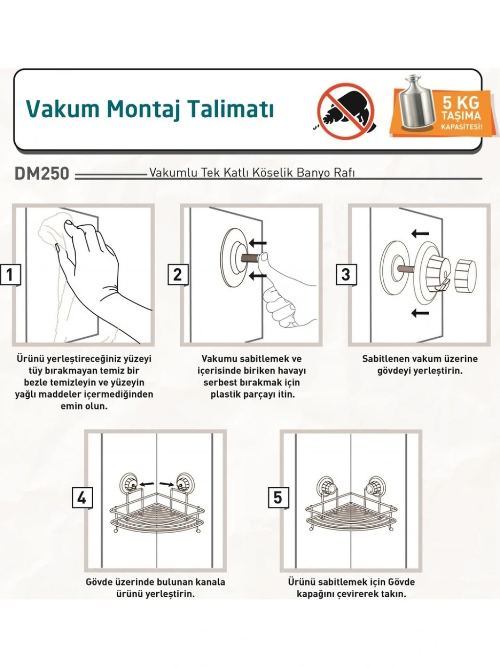 VAKUMLU MONTAJSIZ ASKILI PASLANMAZ BANYO KÖŞE RAFI