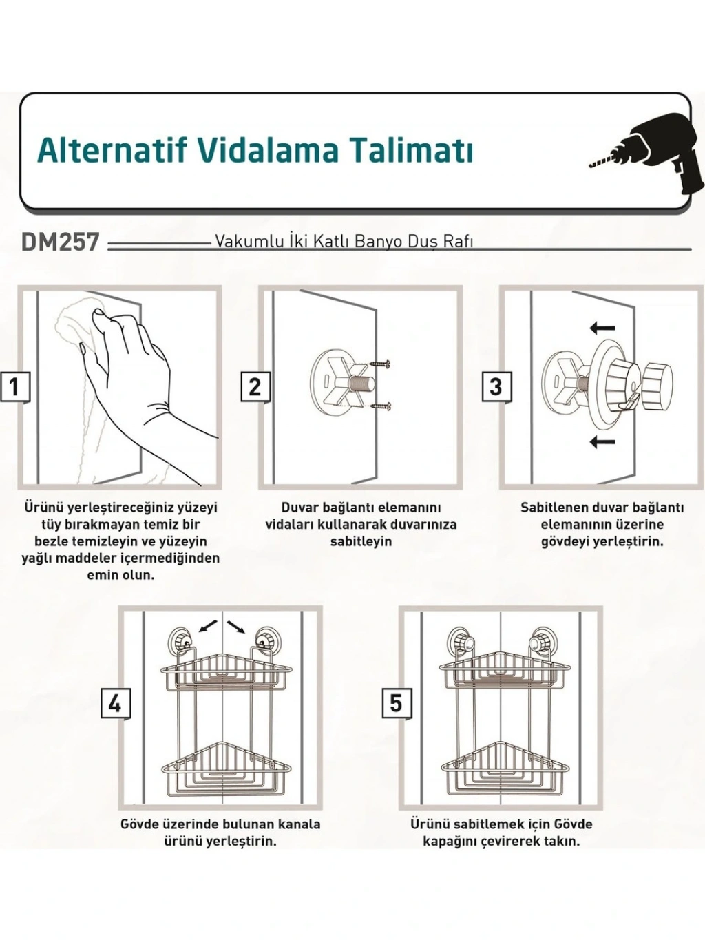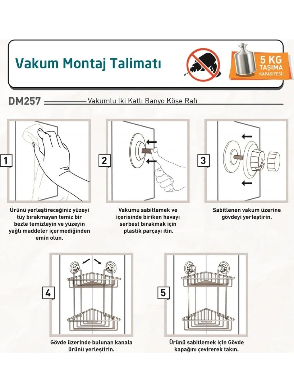 VAKUMLU MONTAJSIZ 2 KATLI PASLANMAZ BANYO KÖŞE RAFI