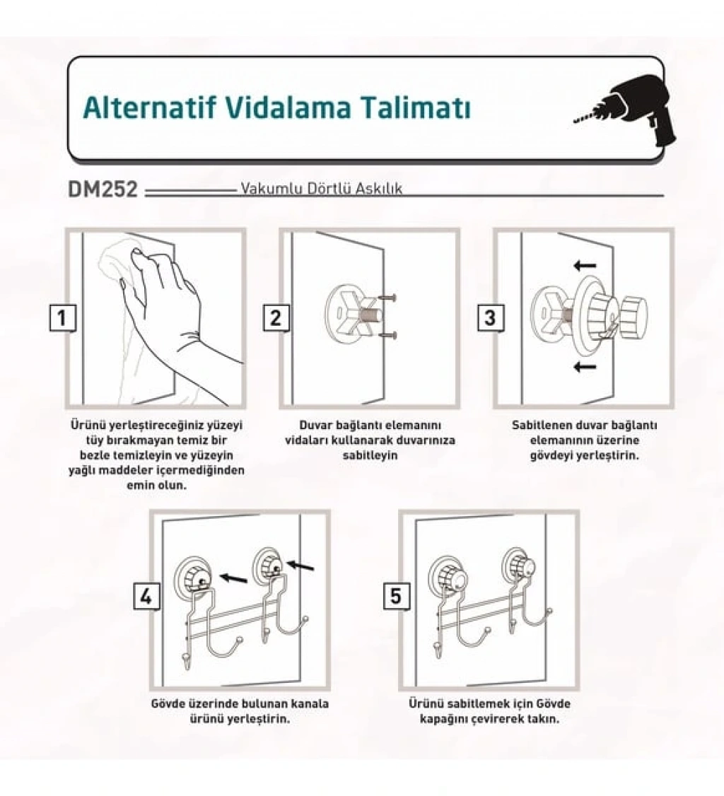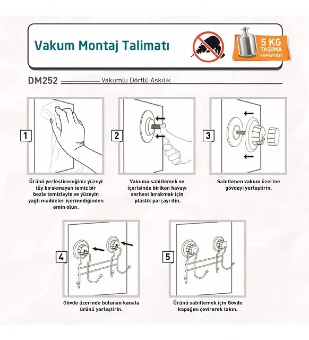 VAKUMLU MONTAJSIZ 4'LÜ ASKILIK