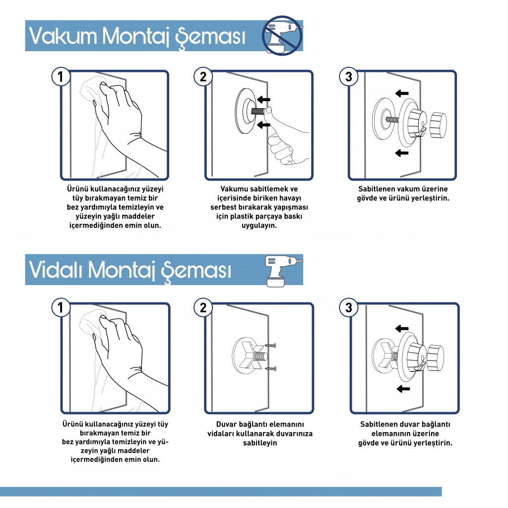 VAKUM ÖZELLİĞİ OLDUĞU İÇİN MONTAJINI YAKLAŞIK 1 DAKİKA İÇİNDE GERÇEKLEŞTİREBİLİRSİNİZ.