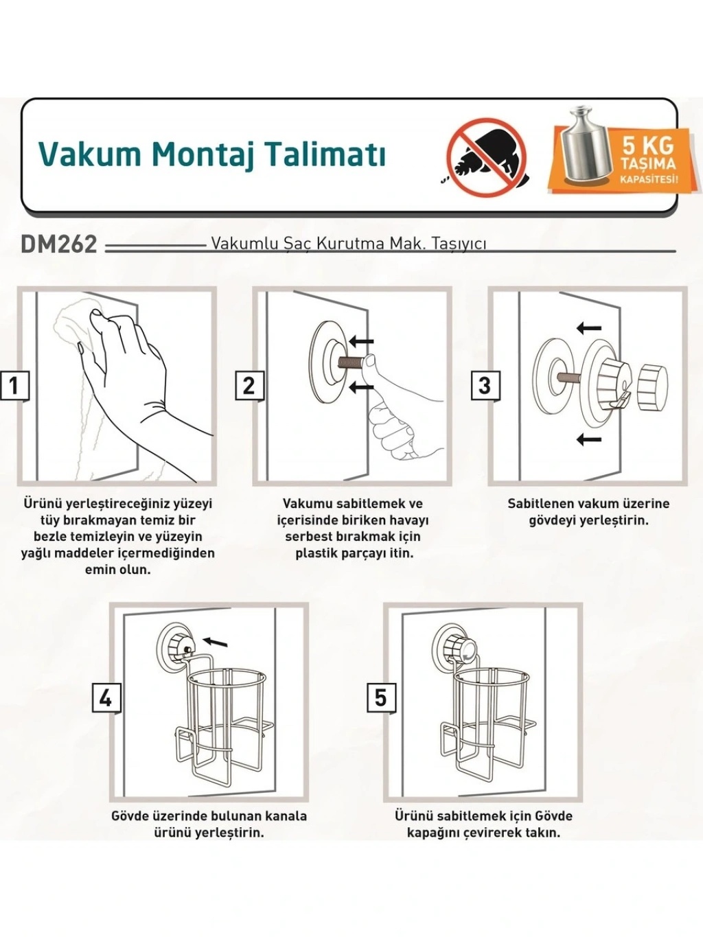 KESİNLİKLE KAYMA DÜŞME YAPMAZ 5 KG'YE KADAR DAYANIKLILIK SAĞLAR.
