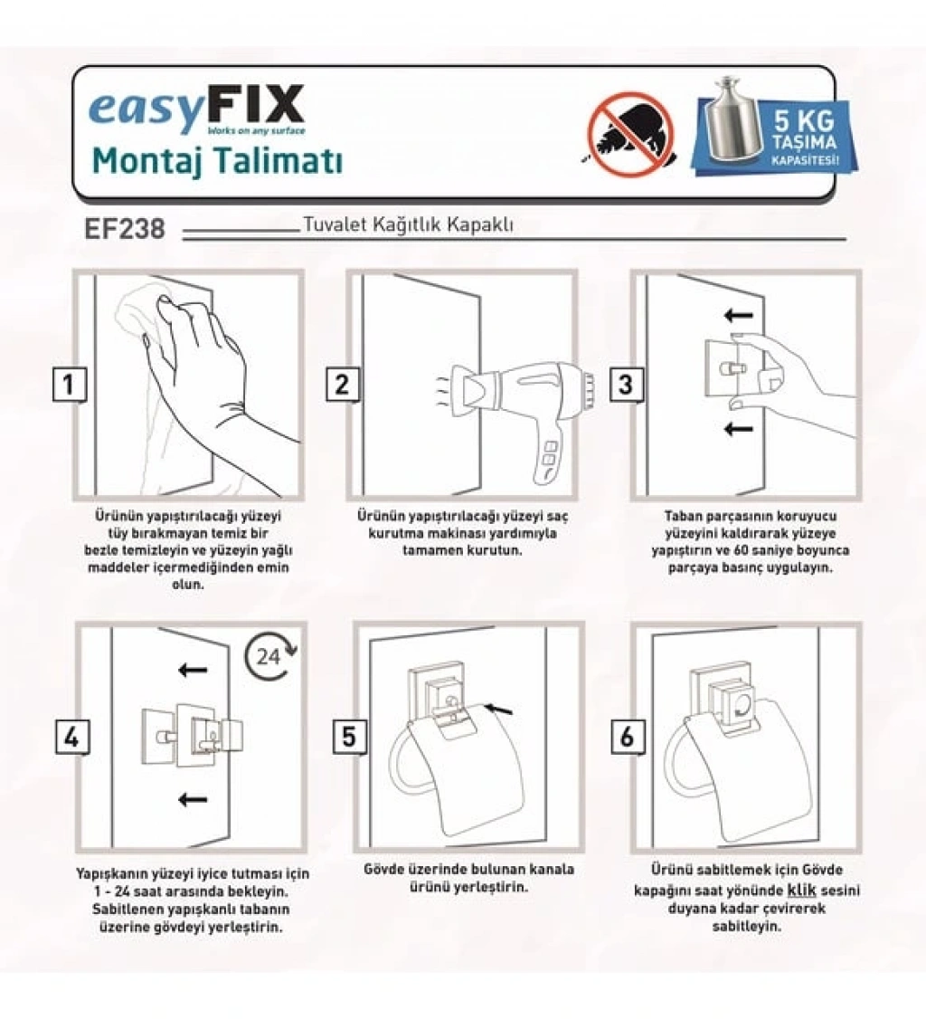 EASYFİX ÖZELLİĞİ OLDUĞU İÇİN MONTAJINI YAKLAŞIK 1 DAKİKA İÇİNDE GERÇEKLEŞTİREBİLİRSİNİZ.