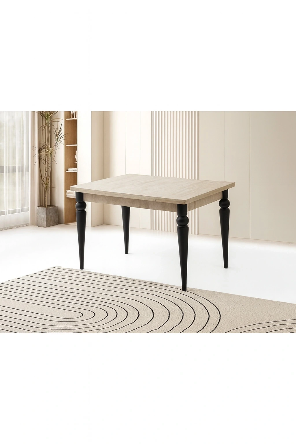 Yandan Açılır Büyüyen Yemek Masası Bej-Siyah Ayaklı 80x120cm